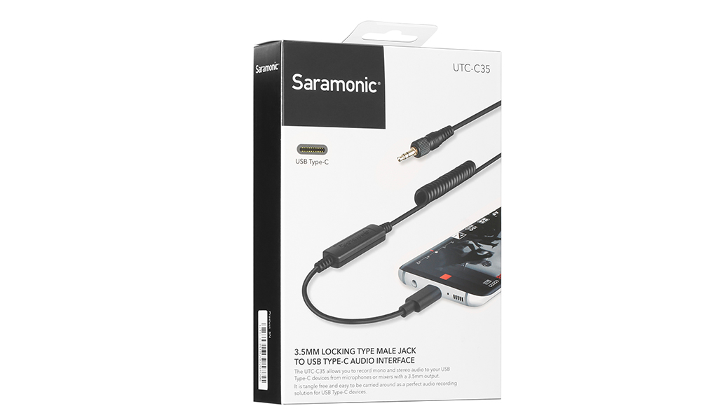 Saramonic UTC-C35,USB Type-C專用麥克風轉接線,輕巧易於攜帶,專為USB Type-C設備所設計,3.5mm鎖定型公插頭可與Saramonic UwMic9、VmicLink5、SR-WM4C、Vmic等無線麥克風系列搭配使用,或是可支援3.5mm輸出的麥克風搭配使用。